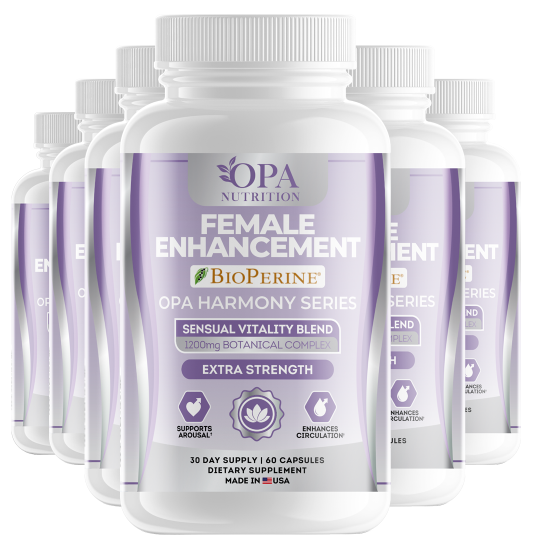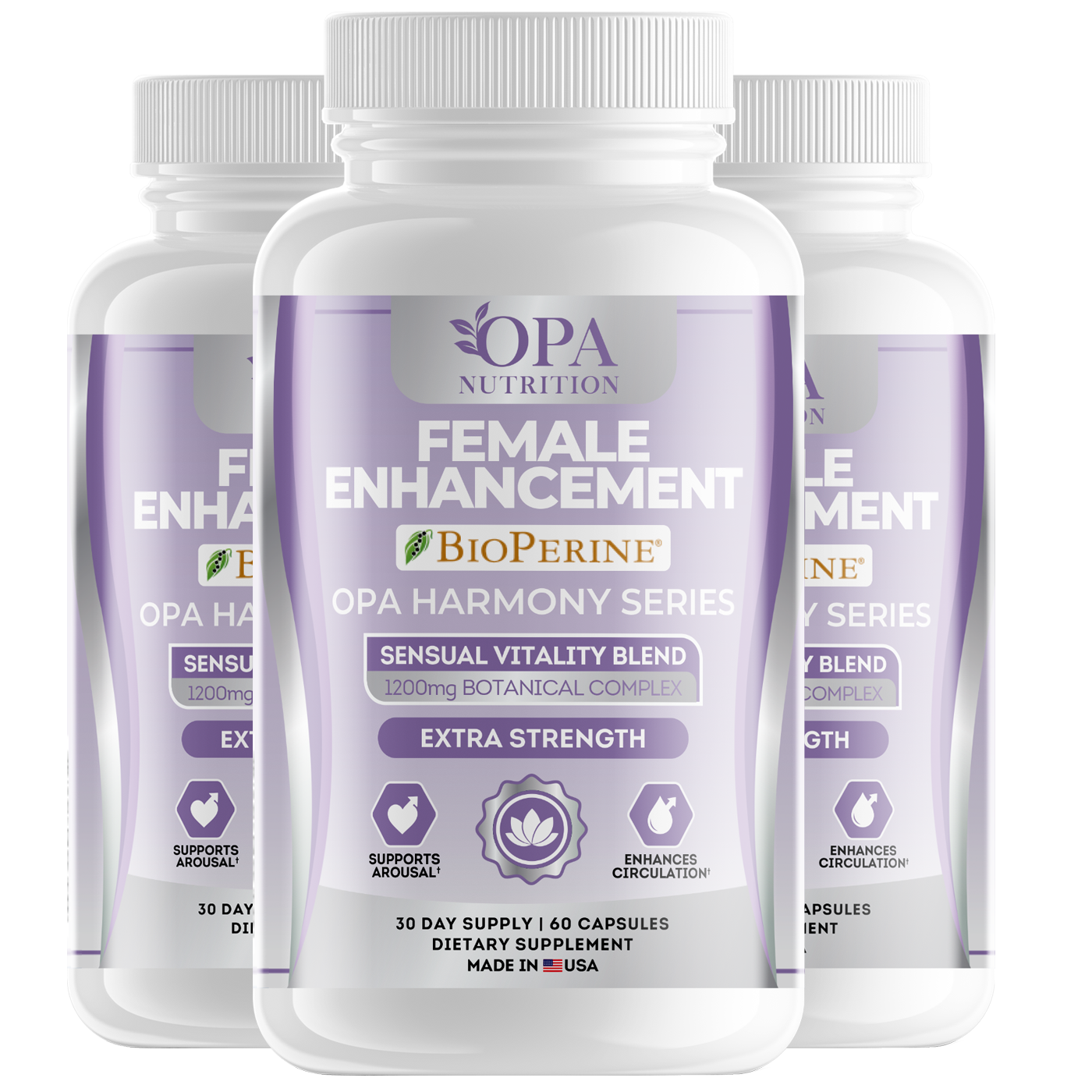 Support your vitality and overall wellness with OPA Harmony Female Enhancement Support Formula. This comprehensive blend combines essential vitamins, minerals, amino acids, and botanicals to complement energy, circulation, and daily balance.
