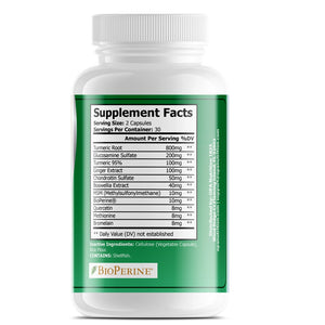 Each serving delivers 800mg of turmeric root, 200mg of glucosamine sulfate, and a synergistic mix of ginger extract, boswellia, MSM, and bromelain—ingredients traditionally valued for their role in joint function. Enhanced with BioPerine for improved absorption, this supplement is designed to help maintain movement with confidence. With 60 vegetable capsules per bottle (30-day supply), it supports consistency in your wellness routine.
