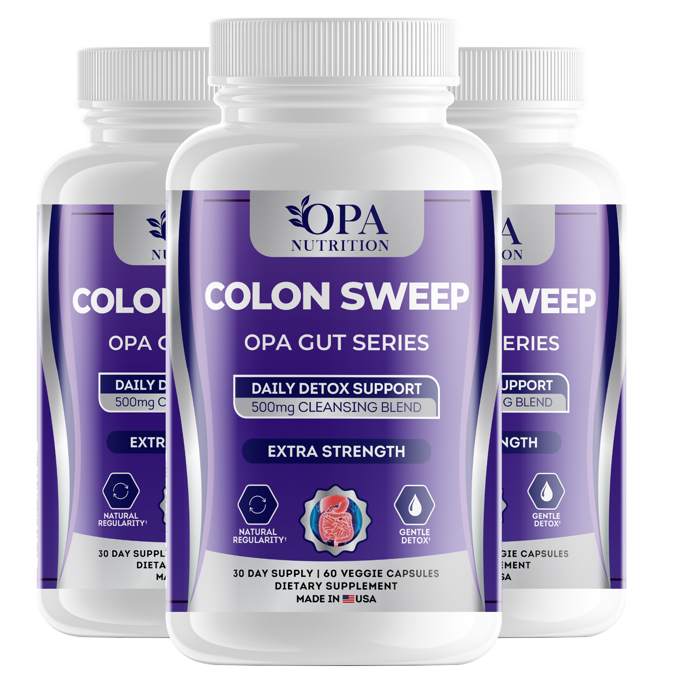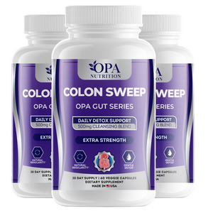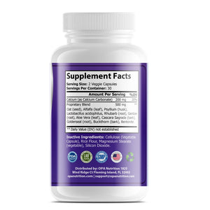 OPA Colon Sweep combines a 500mg proprietary blend of botanicals, fibers, and nutrients, including oat seed, alfalfa, psyllium husk, rhubarb root, aloe vera leaf, cascara sagrada bark, and more. Each 2-capsule serving also provides 200mg of calcium for additional nutritional support.