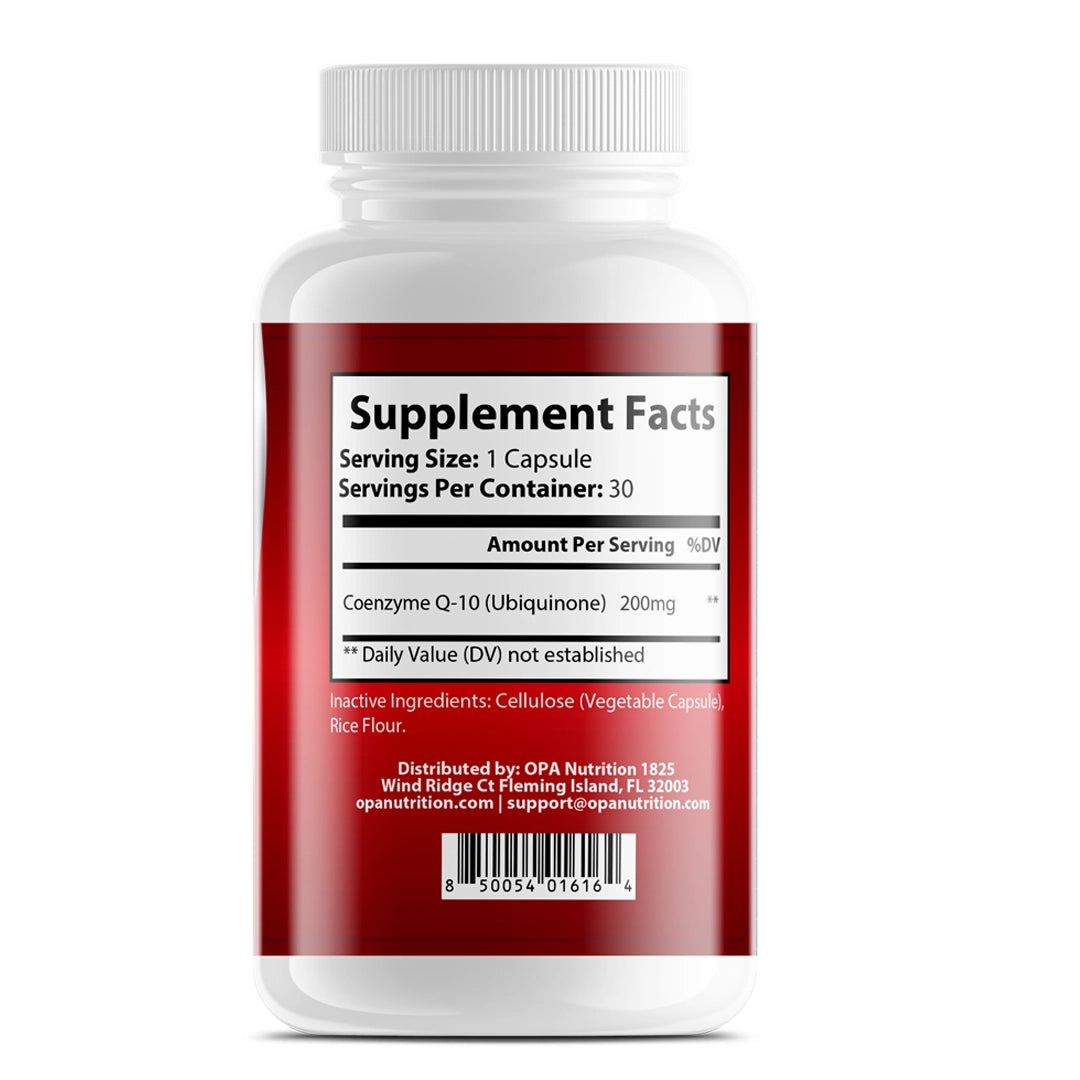 OPA CoQ10 Ubiquinone provides 200mg of Coenzyme Q10 per serving. Each bottle contains 30 vegetable capsules for a convenient 1 Month Supply when taken as directed. Manufactured in GMP-certified facilities, this supplement is Non-GMO and made in the USA.