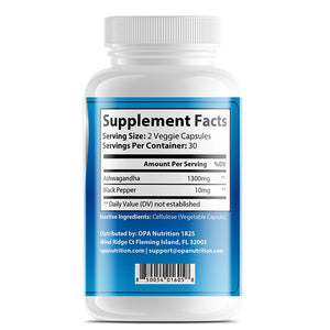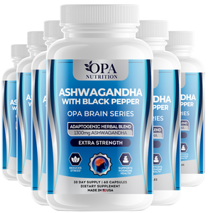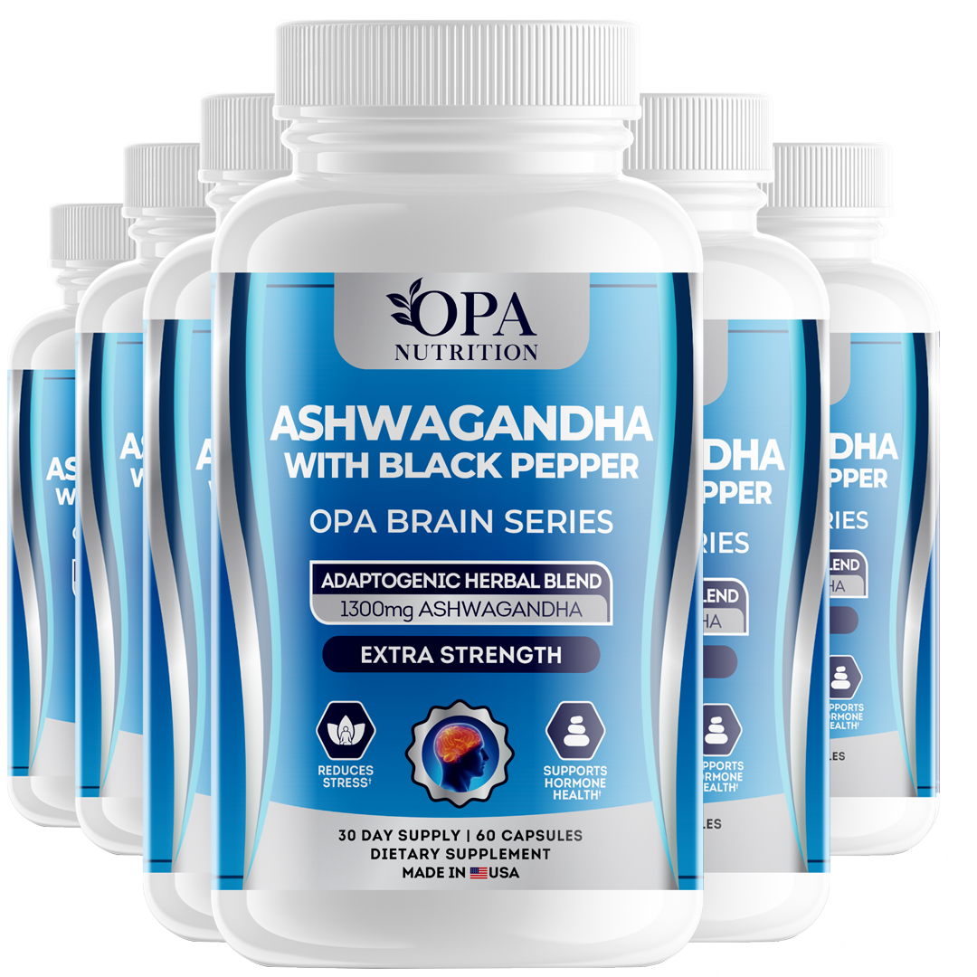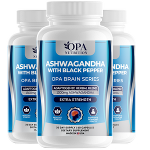 Enhance your daily balance and mental clarity with OPA Brain Ashwagandha with Black Pepper. This plant-based formula provides 1,300mg of ashwagandha root paired with black pepper for optimal absorption, supporting relaxation, focus, and overall well-being.