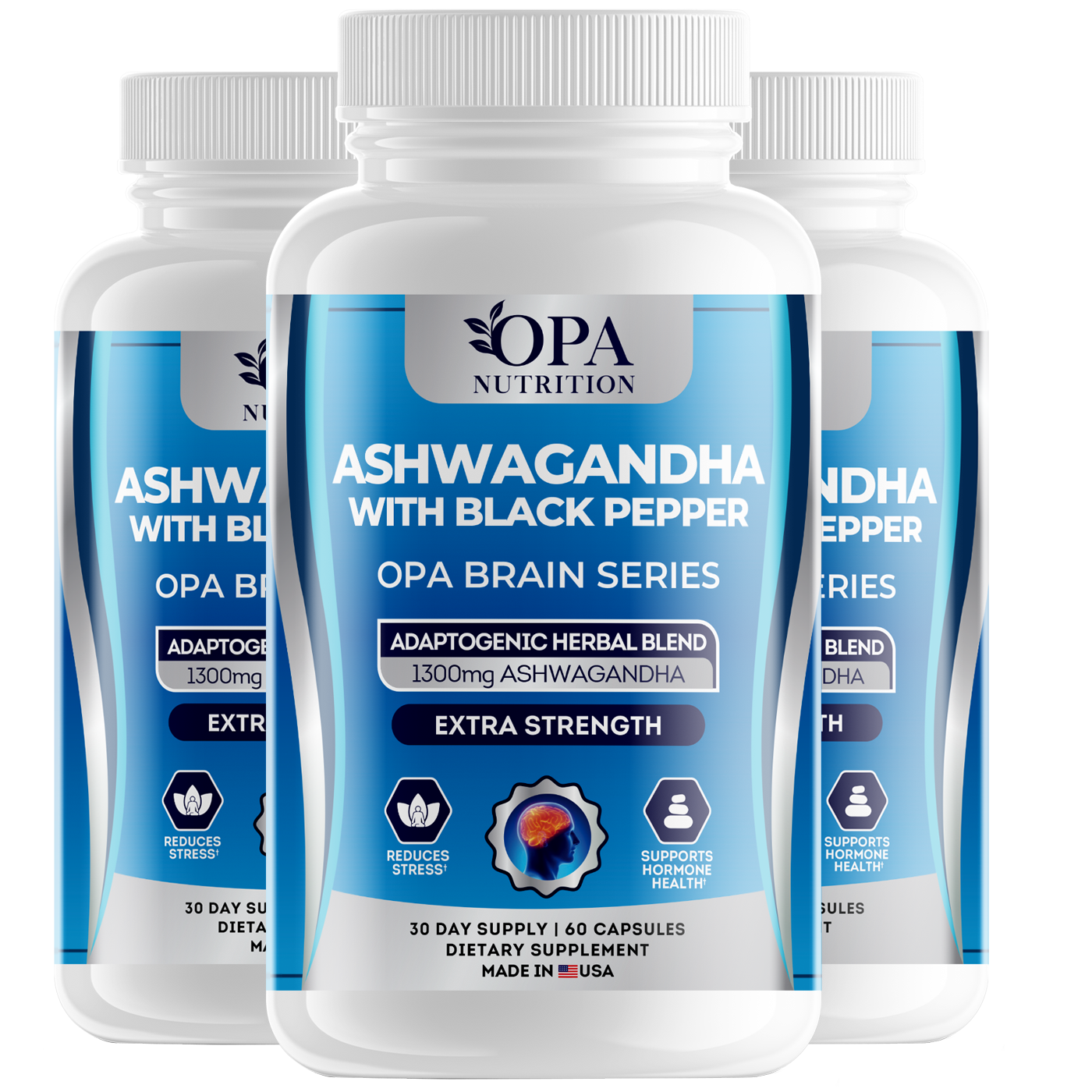 OPA Brain Ashwagandha with Black Pepper – Adaptogenic Focus & Balance Support, 60ct