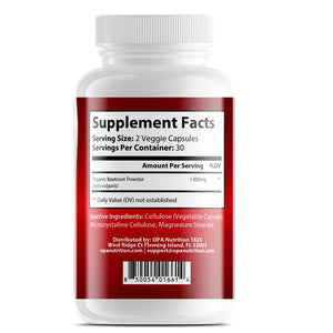 Support your heart health and daily energy with OPA Heart Organic Beetroot Capsules. Each serving provides 1,300mg of pure, organic beetroot powder, formulated to complement active lifestyles and balanced nutrition.